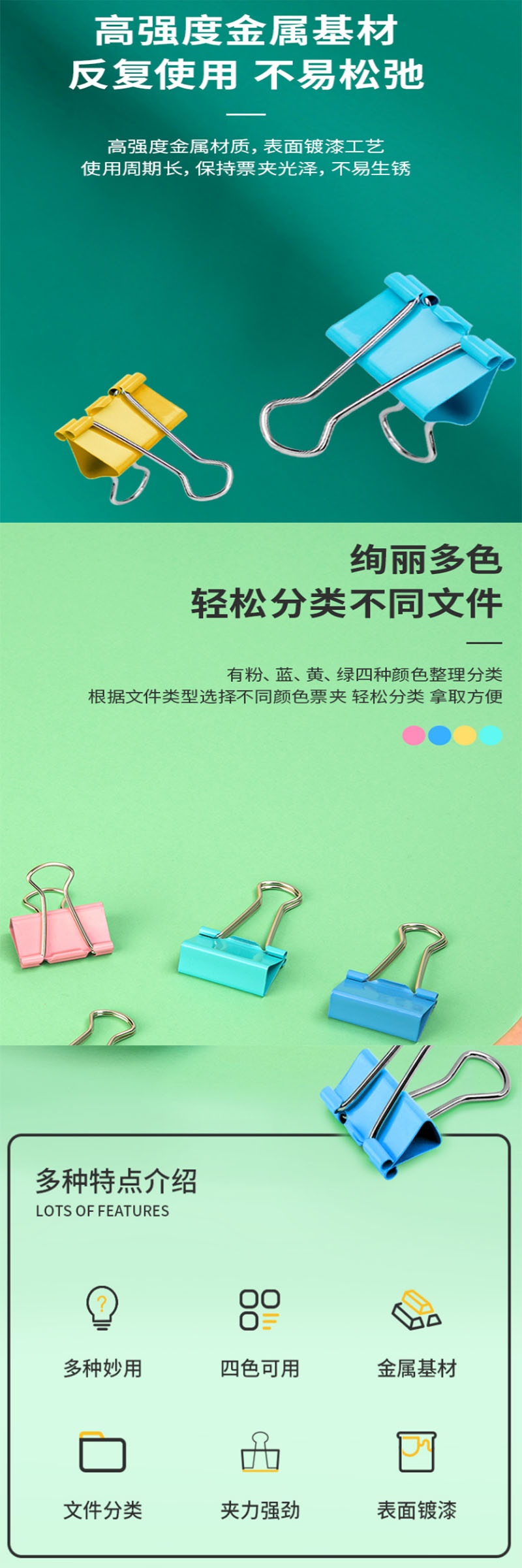 有粉、蓝、黄、绿四种颜色整理分类,根据文件类型选择不同颜色票夹轻松分类 拿取方便
