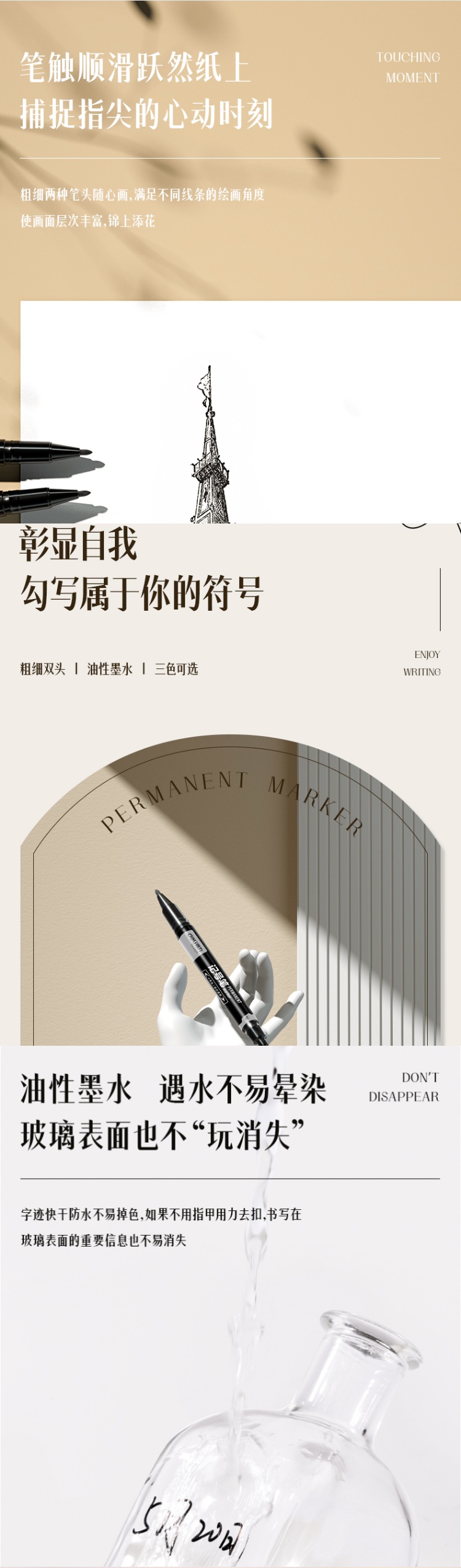 油性墨水,遇水不易晕染,适用多种表面书写,方便实用。