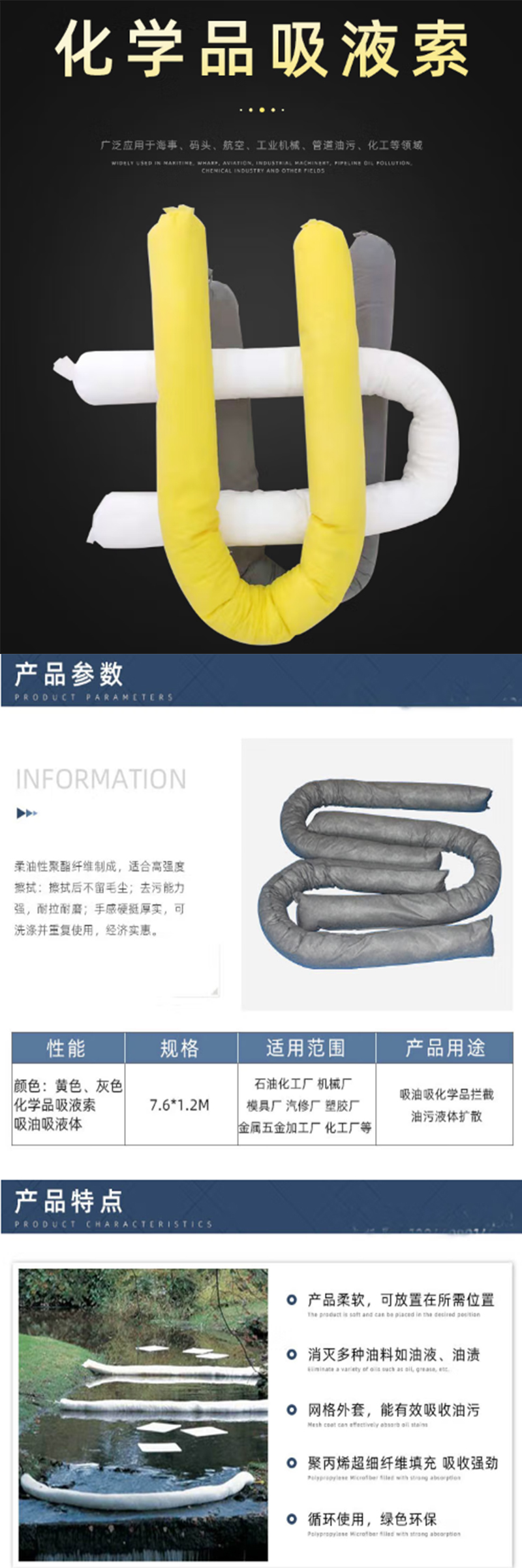 化学品吸附棉条 灰色 Φ7.6厘米*1.2米/条 吸油吸水