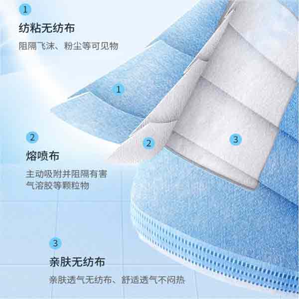 可塑形高弹鼻垫佩戴口罩后,按压可塑形高弹鼻垫贴合面部可严防污染物从缝隙渗入,透明线型条热压固定塑型,更能检验产品质量,优质熔喷布滤材选用优质过滤熔喷布高效过滤。