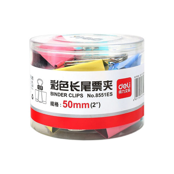 DELI/得力 燕尾夹 【省力30%】彩色50mm/12只/筒